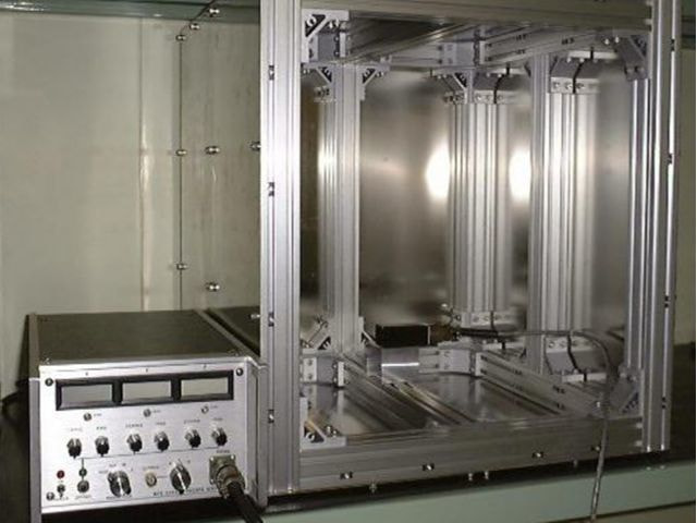 地磁気以下の磁性レベルを測定するため磁気シールドで囲まれた空間を作り測定します。(最小変動量5nT程度)