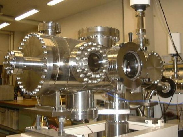 超高真空域まで到達する真空性能を要するチェンバー及び排気系を用い、放出ガス量算出や質量分析を行います。