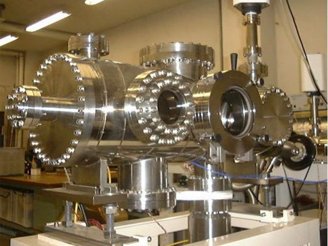 超高真空域まで到達する真空性能を要するチェンバー及び排気系を用い、放出ガス量算出や質量分析を行います。
